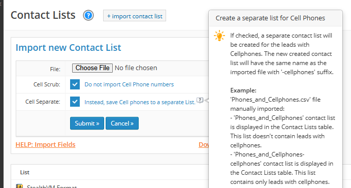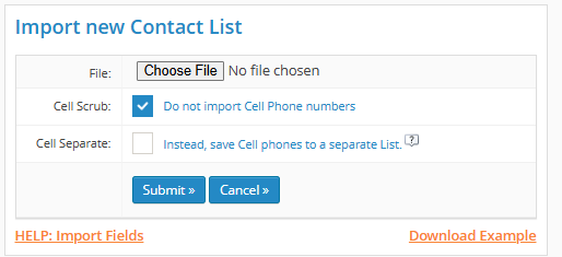 When manually importing a contact lists, users have the option to remove Cell Phone Numbers from their lists. To do so, enable "Do not import Cell Phone numbers".
